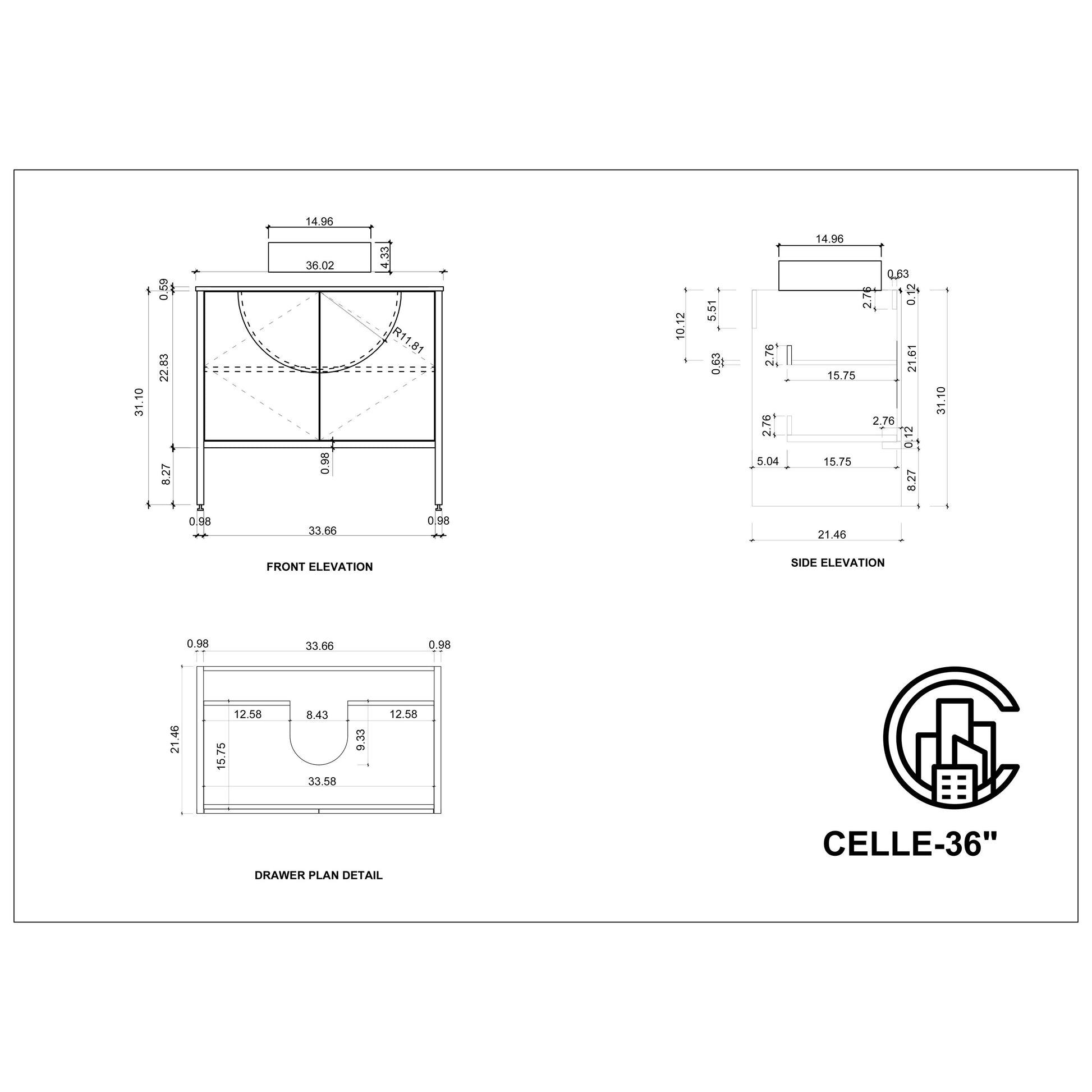 Celle 36" Freestanding Bathroom Vanity with Premium Grade ATH Matte Solid Surface Top and Vessel Sink