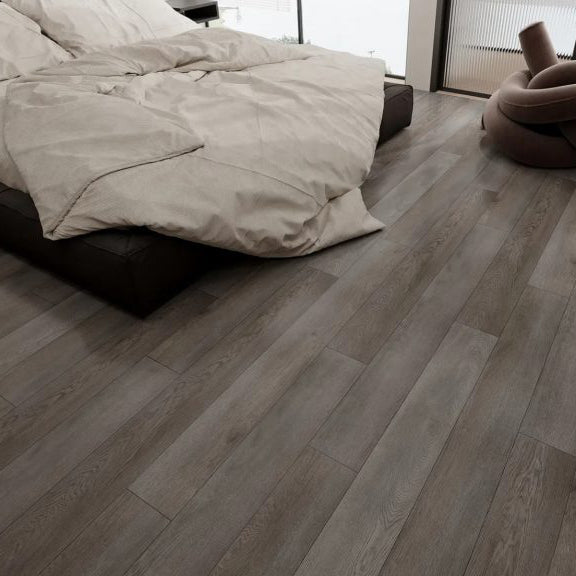 Add a refined, contemporary tone to your interiors with Central Mahoe Waterproof SPC Flooring. This rich, cool-toned plank features a charcoal-brown base with deep woodgrain detailing, offering dramatic character without overwhelming the space. Its EIR (Embossed-in-Register) surface mimics the texture of real wood for an authentic feel, while the painted bevel edges deliver a crisp, dimensional plank appearance.