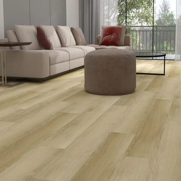 Capture the cheerful charm of sunlit wood with Central Maple Waterproof SPC Flooring. Featuring a clean, golden hue with soft maple grain patterns, this flooring brings a fresh, uplifting tone to any space—from modern family rooms to cozy kitchens. The EIR (Embossed-in-Register) surface texture paired with painted bevel edges adds authentic dimension and visual continuity to every plank.