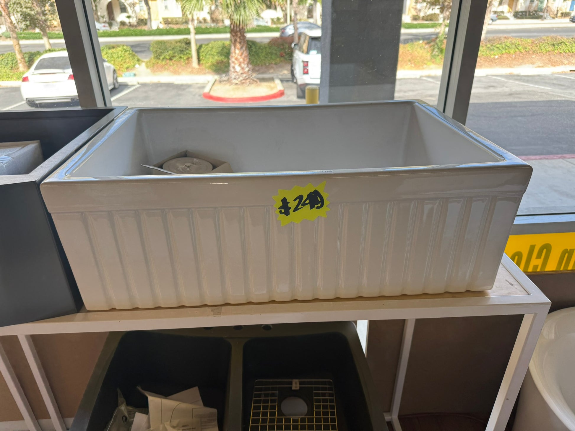 [CLEARANCE] White Single Fluted Apron Kitchen Sink