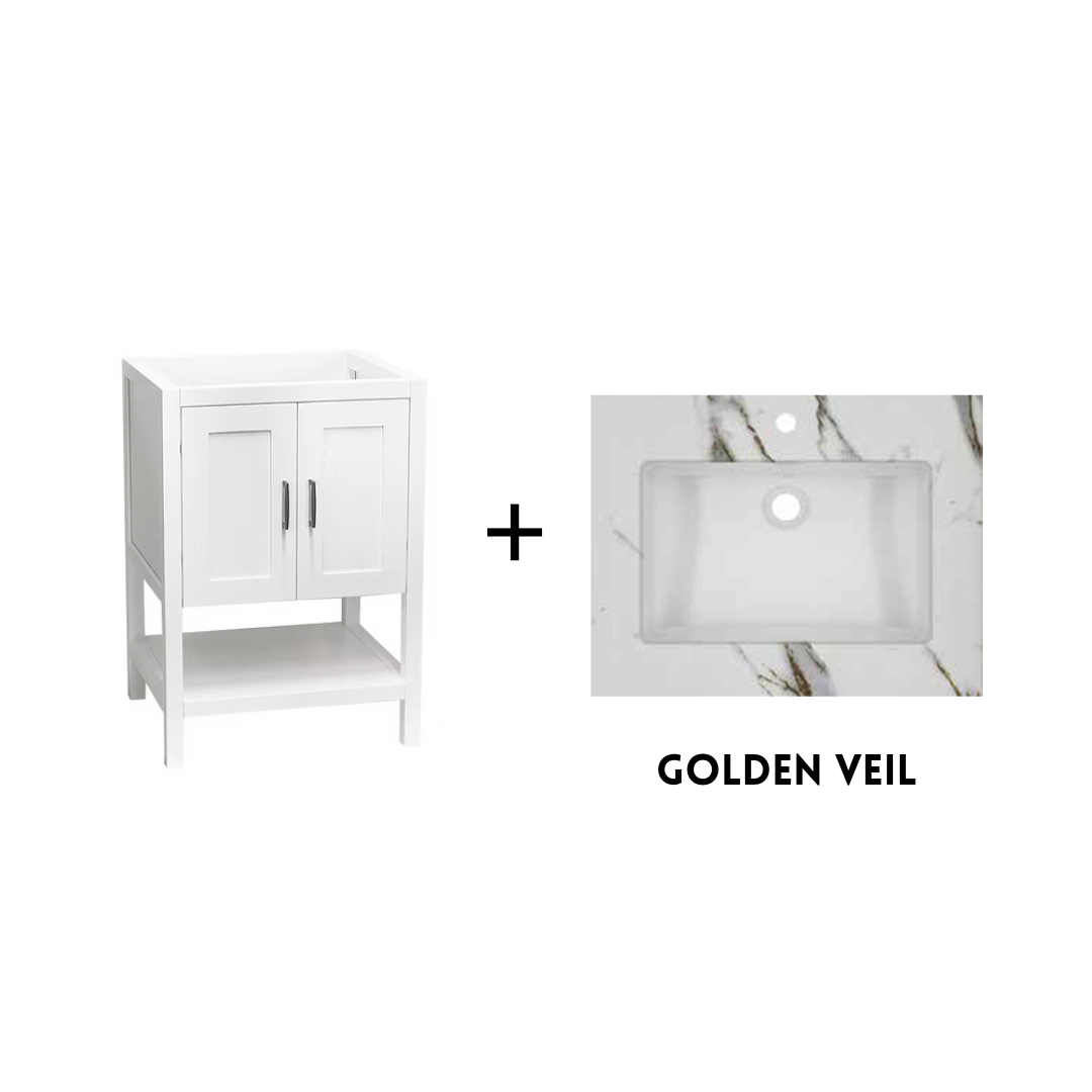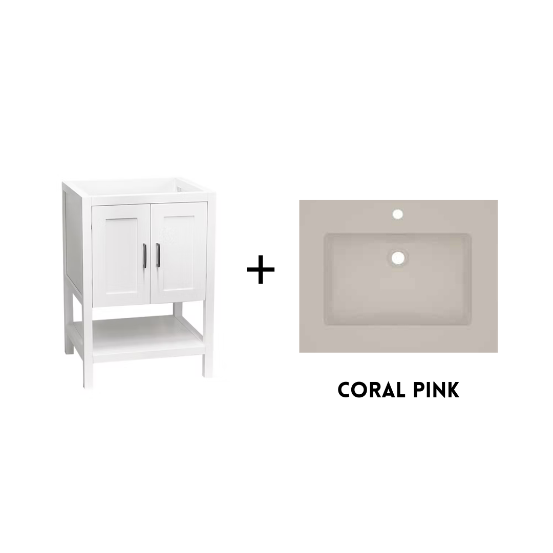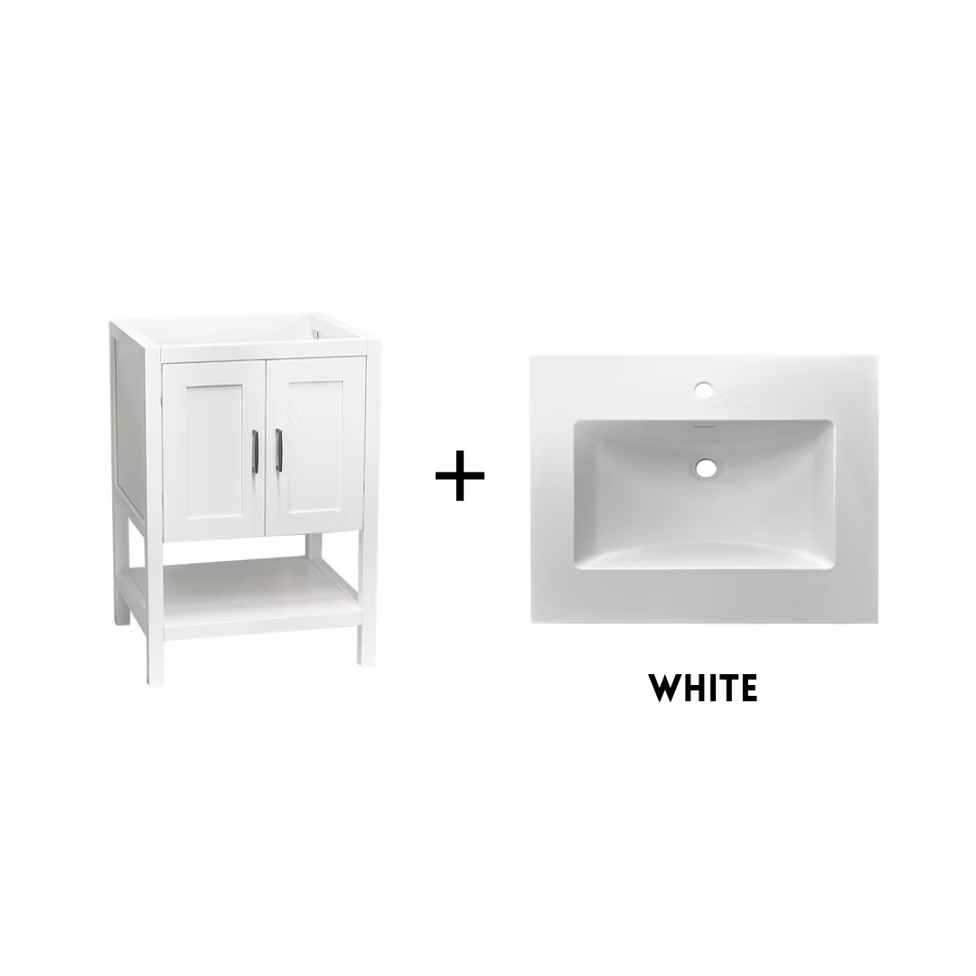 The Monterey 24" Freestanding Bathroom Vanity combines modern lines with warm, inviting finishes, making it a versatile foundation for a stylish bathroom design. Available in crisp White or rich Walnut, this compact vanity offers smart storage, a clean silhouette, and the flexibility to pair with your choice of countertop and sink.