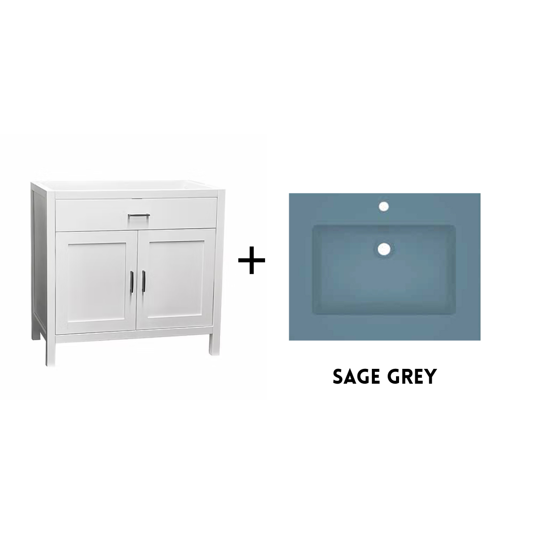 Newport 36" Freestanding Bathroom Vanity with Solid Surface Integrated Sink Top in Light Grey and White