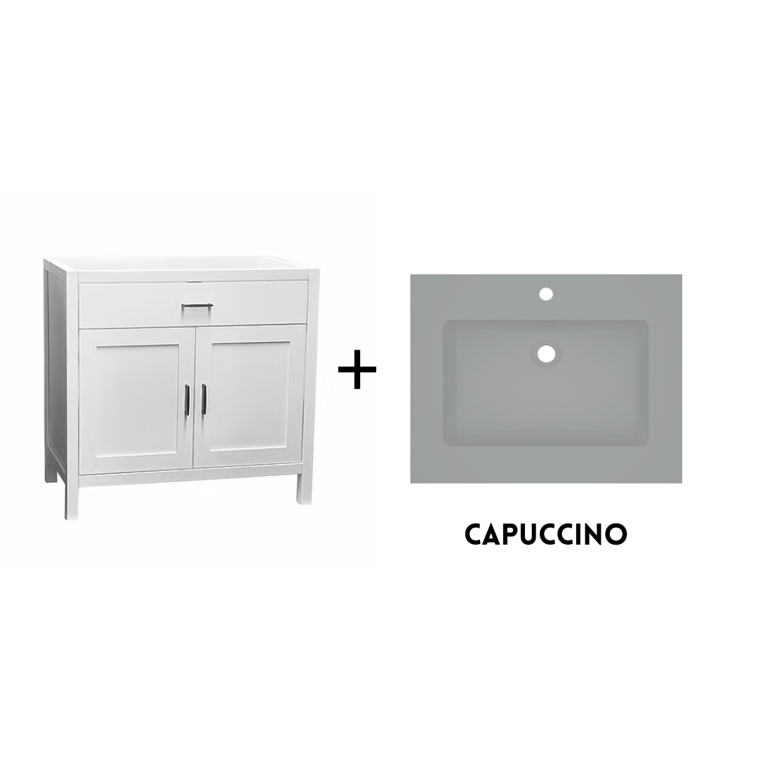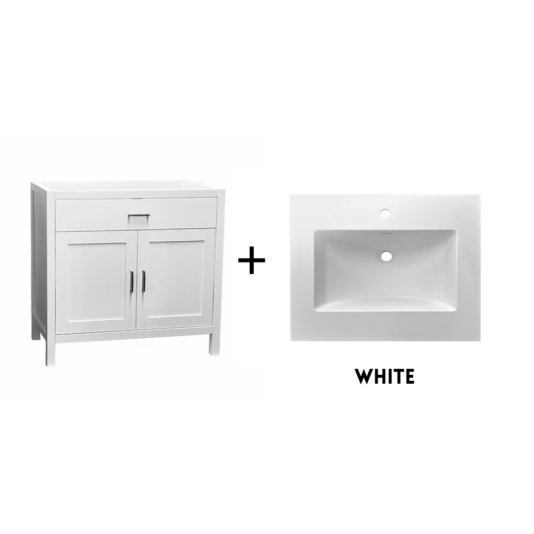 Bring contemporary elegance into your bathroom with the Newport 36" Freestanding Vanity. Available in Light Grey and White, this vanity blends minimalist design with everyday functionality. A seamless solid surface integrated sink top pairs beautifully with clean cabinetry, while soft-close storage keeps your essentials organized in style.