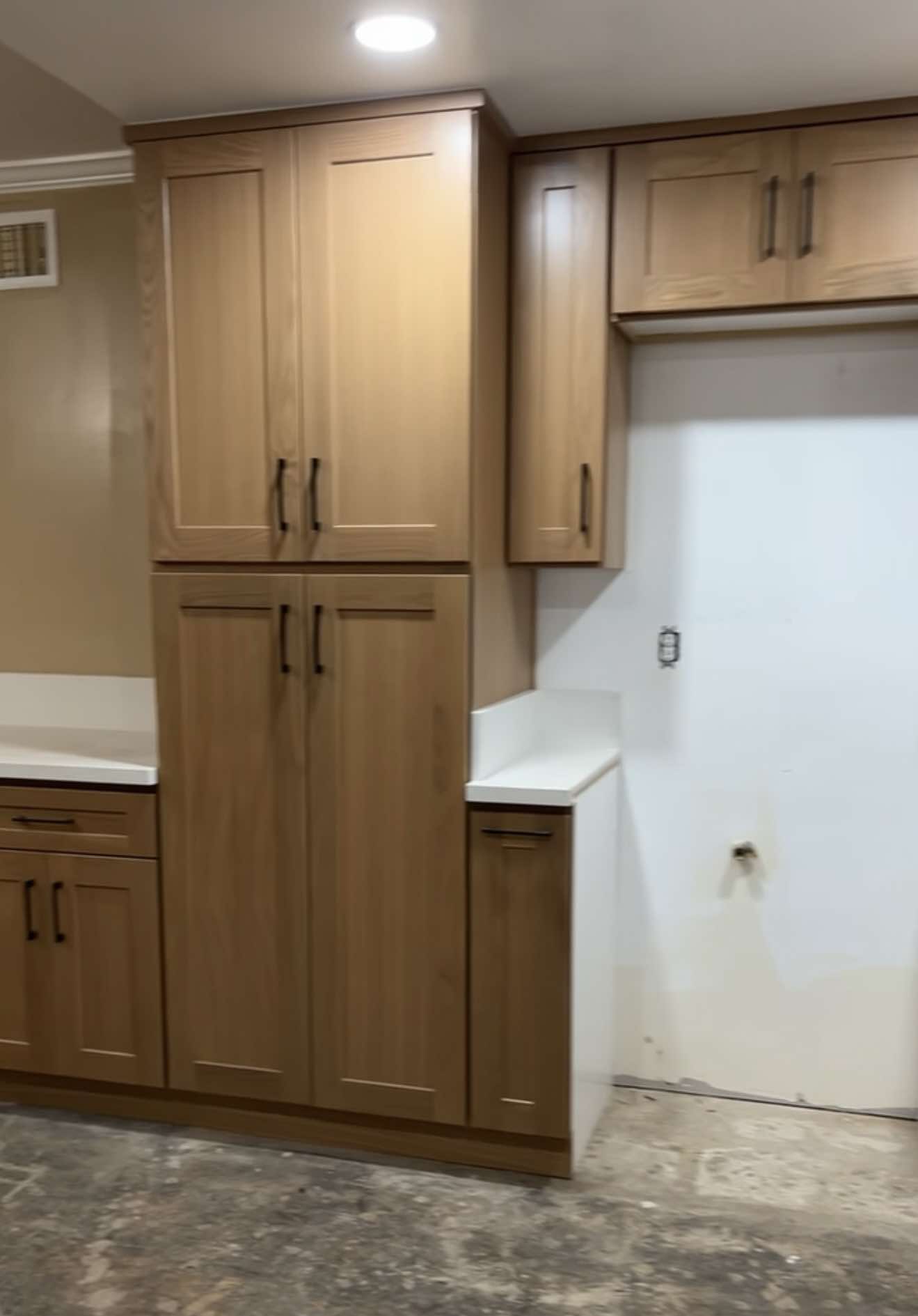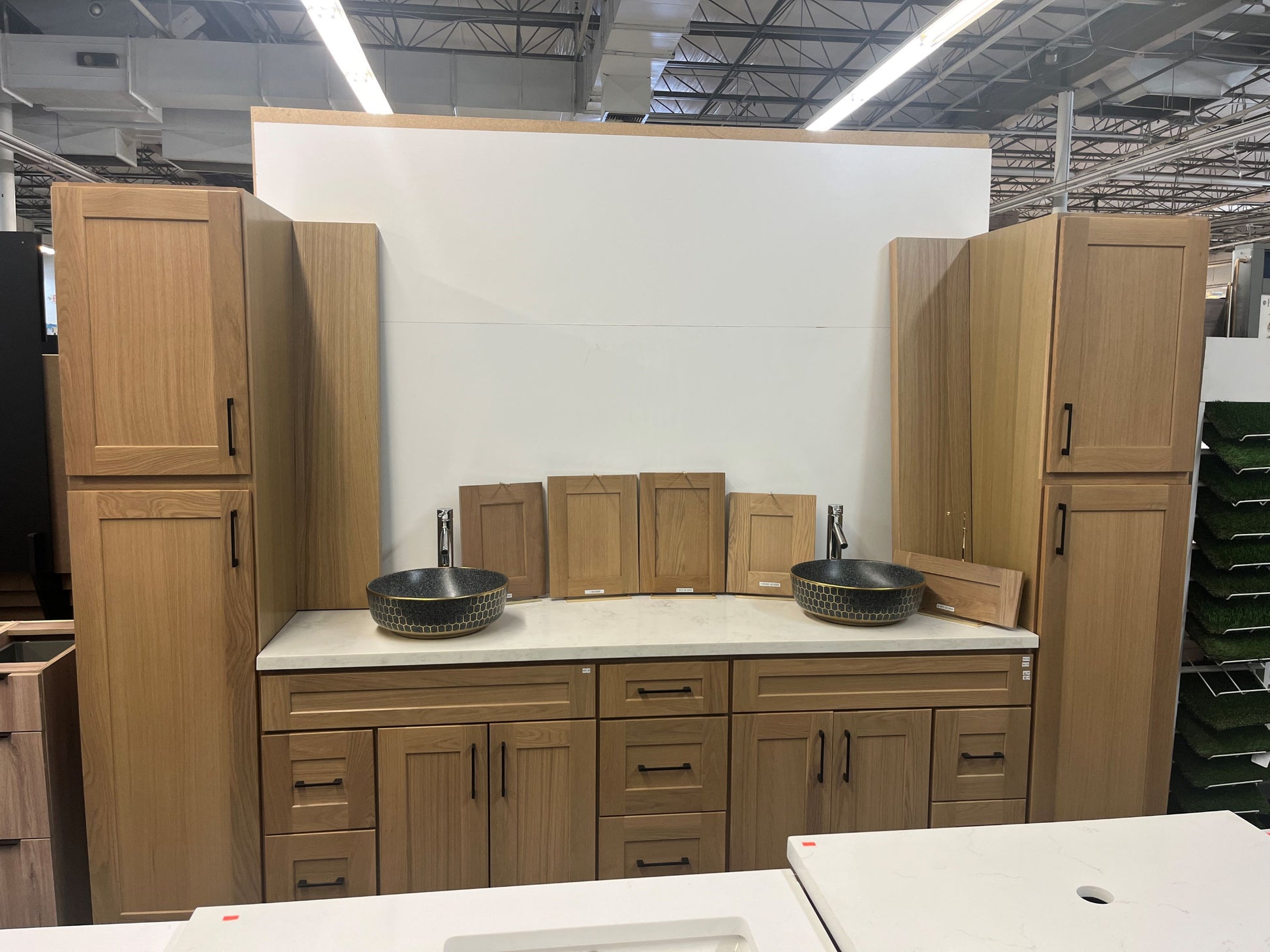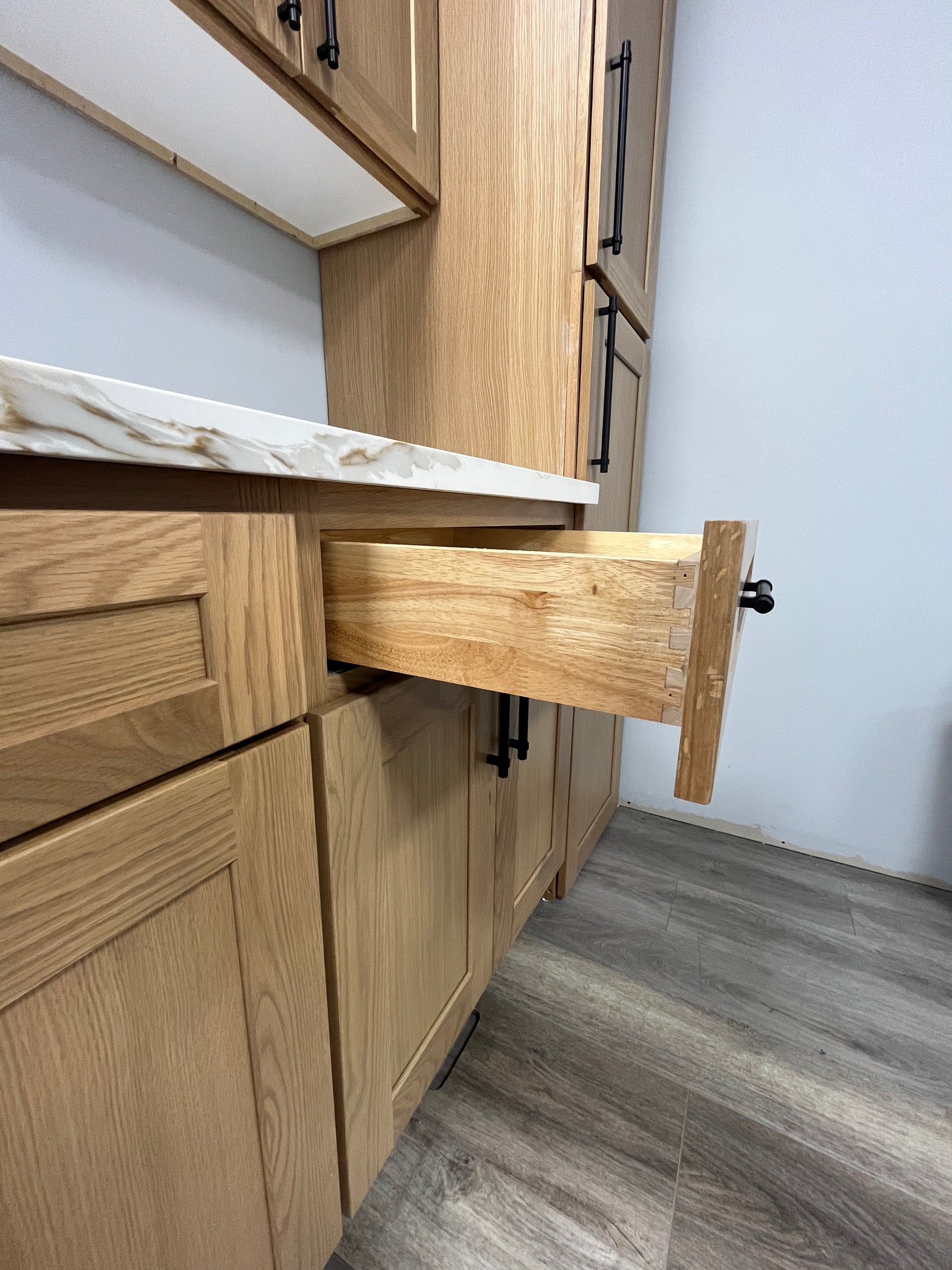 Love this vanity - it was easy to install and looks great. Slight gap in between the two cabinets, but we don't mind too much. The seamless sinks & countertop are beautiful. Drawer space isn't amazing, but the soft close features and deep cabinets make up for it