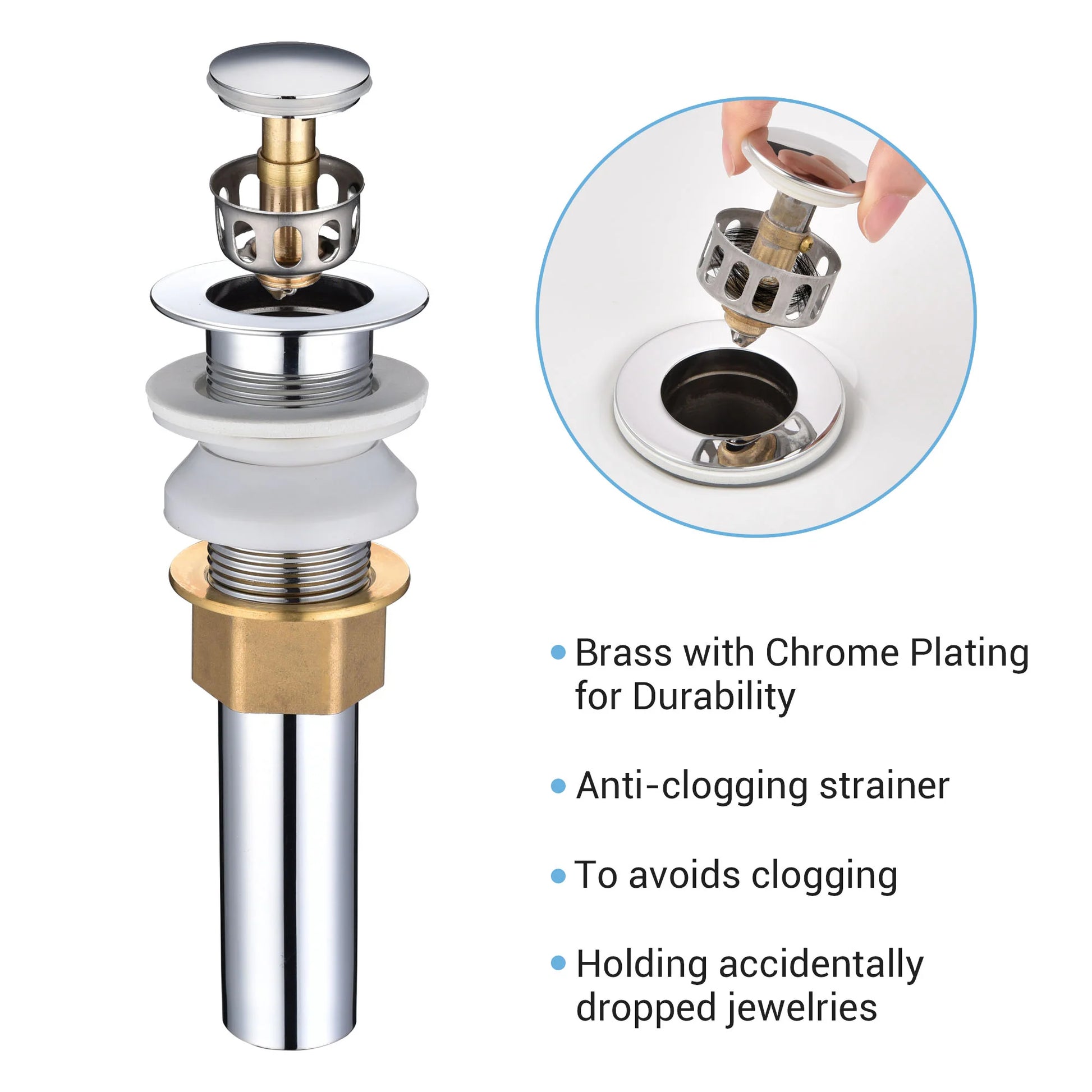 - Free Pop-Up Drain with Double Gasket: The included one-piece chromium alloy drain features a longer hex nut for easy manual screwing and an upgraded double gasket to prevent water leakage.